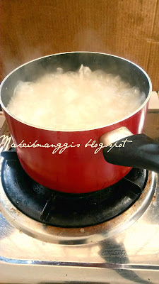 - Didihkan air dalam periuk.Masukkan beras dan garam.Masak sehingga 90 peratus masak.